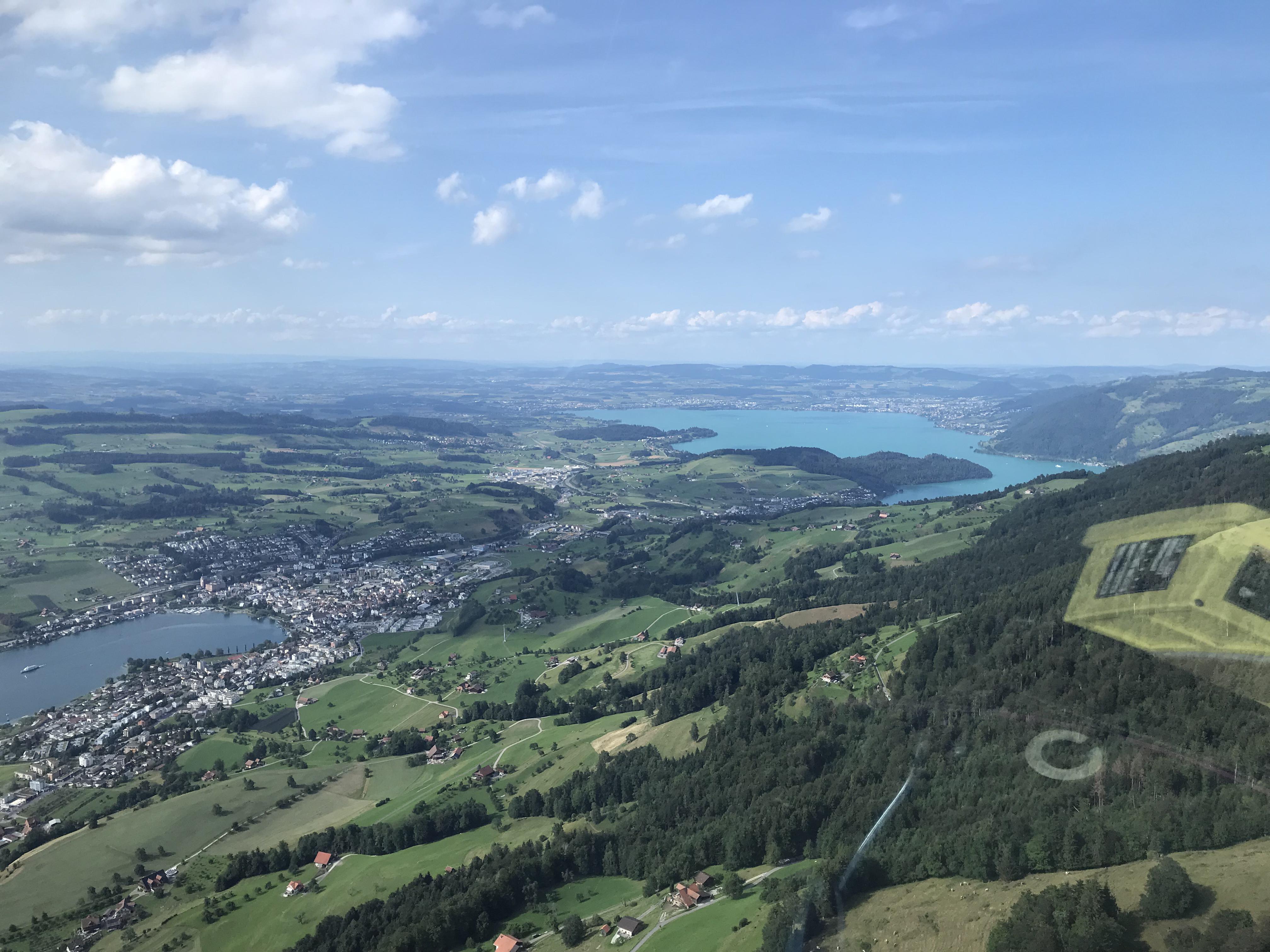 Kurz nach dem Start auf dem schönen Flugplatz Buttwil, können Sie die Aussicht auf den Hallwylersee, den Baldeggersee, den wunderschönen Vierwaltstättersee mit der Stadt Luzern, sowie auf die atemberaubende Rigi geniessen.